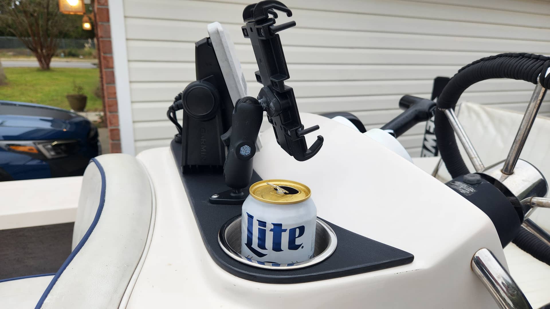 I’ll keep this short & sweet, & just include a bunch of photos. Have been wanting to redo the top of my console since I bought this boat earlier this year. Some 1/4” black starboard, a RAM mount, & a generic stainless recessed cupholder from Amazon (plus several hours of my time, of course) worked out to a pretty clean setup, if I do say so myself. Also added a recessed cupholder on my platform, which I’ve had on my last two boats, too.