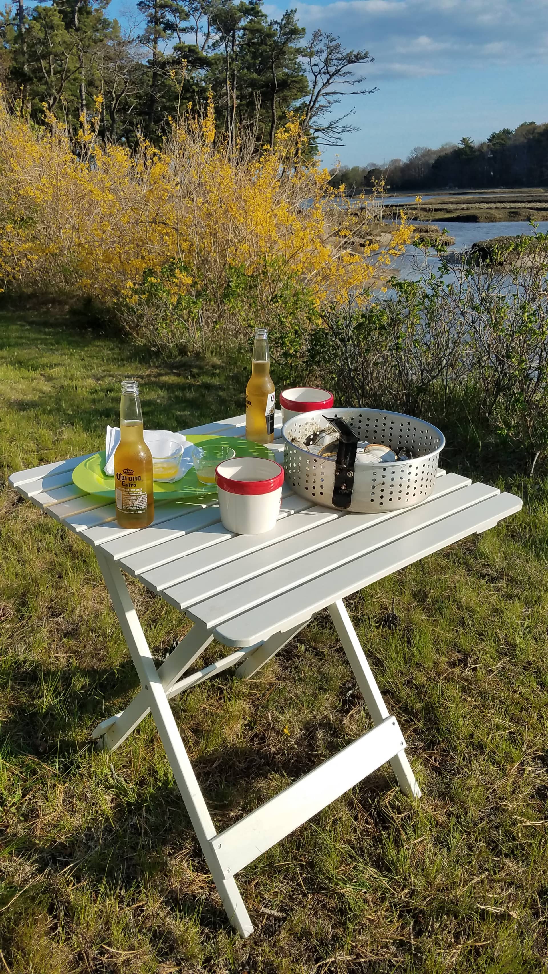 You guys need to come up to Maine in the summer when its too hot and humid. Takes about an hour in our backyard estuary at liw tide (10 foot tides) to dig a peck of soft shell (steamers) clams. Let them soak in salt water for about 5 or 6 hours for them to spit out the sand and 10 minutes of steaming, broth dunk butter dunk and a beer