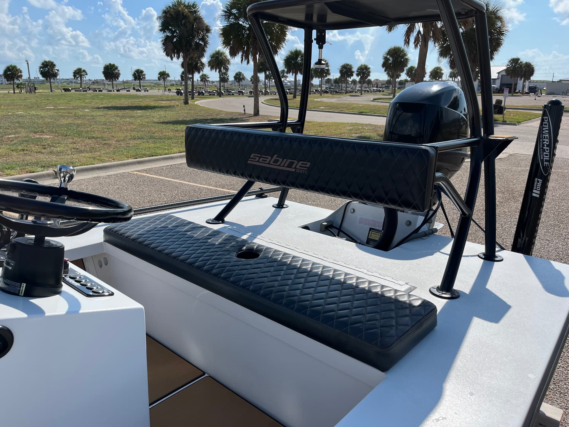Cloud white hull/deck w/mocha over black SeaDek.