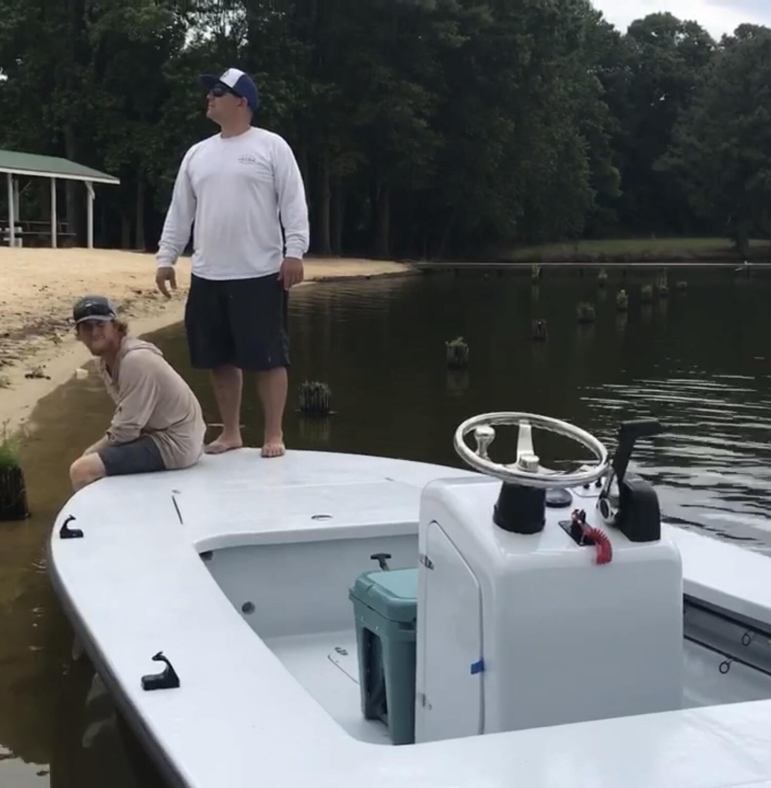 I took this pic of @Morgan in his skiffâ while I was sitting out in the safer shallow water in my skiff. He ventured a little further inland than me. Not sure how skinny that is exactly any guesses? That little skiff is impressive to me.