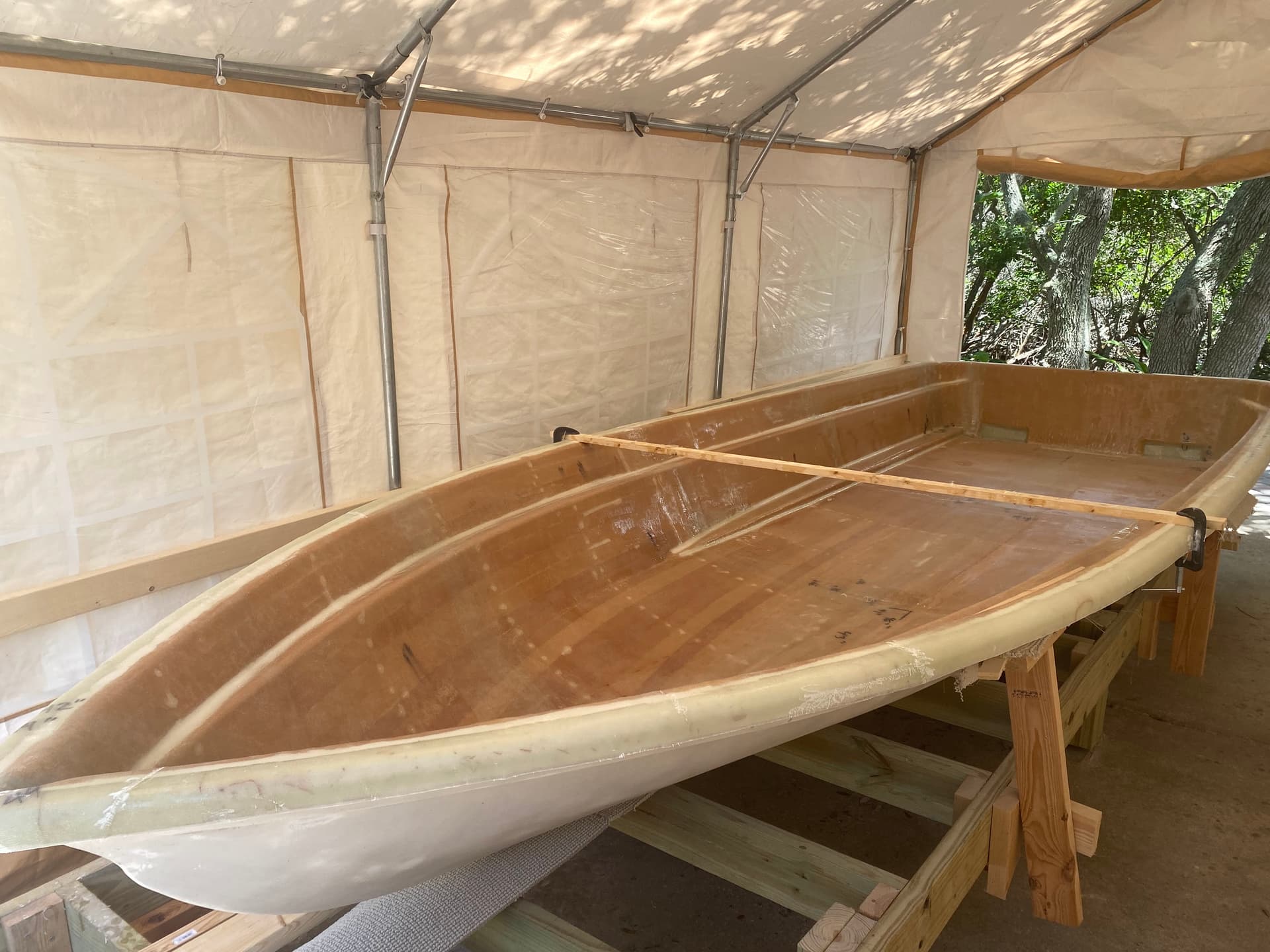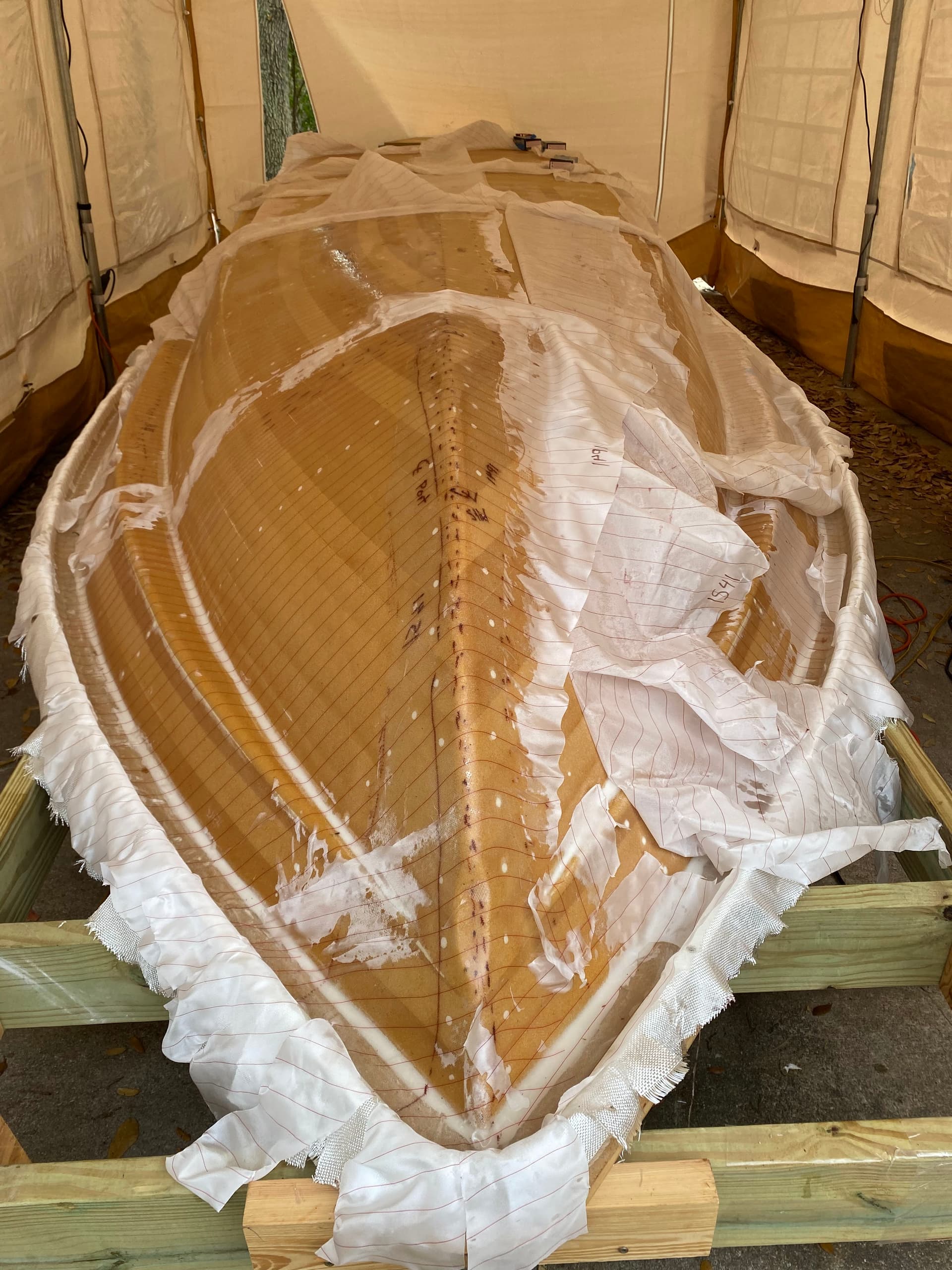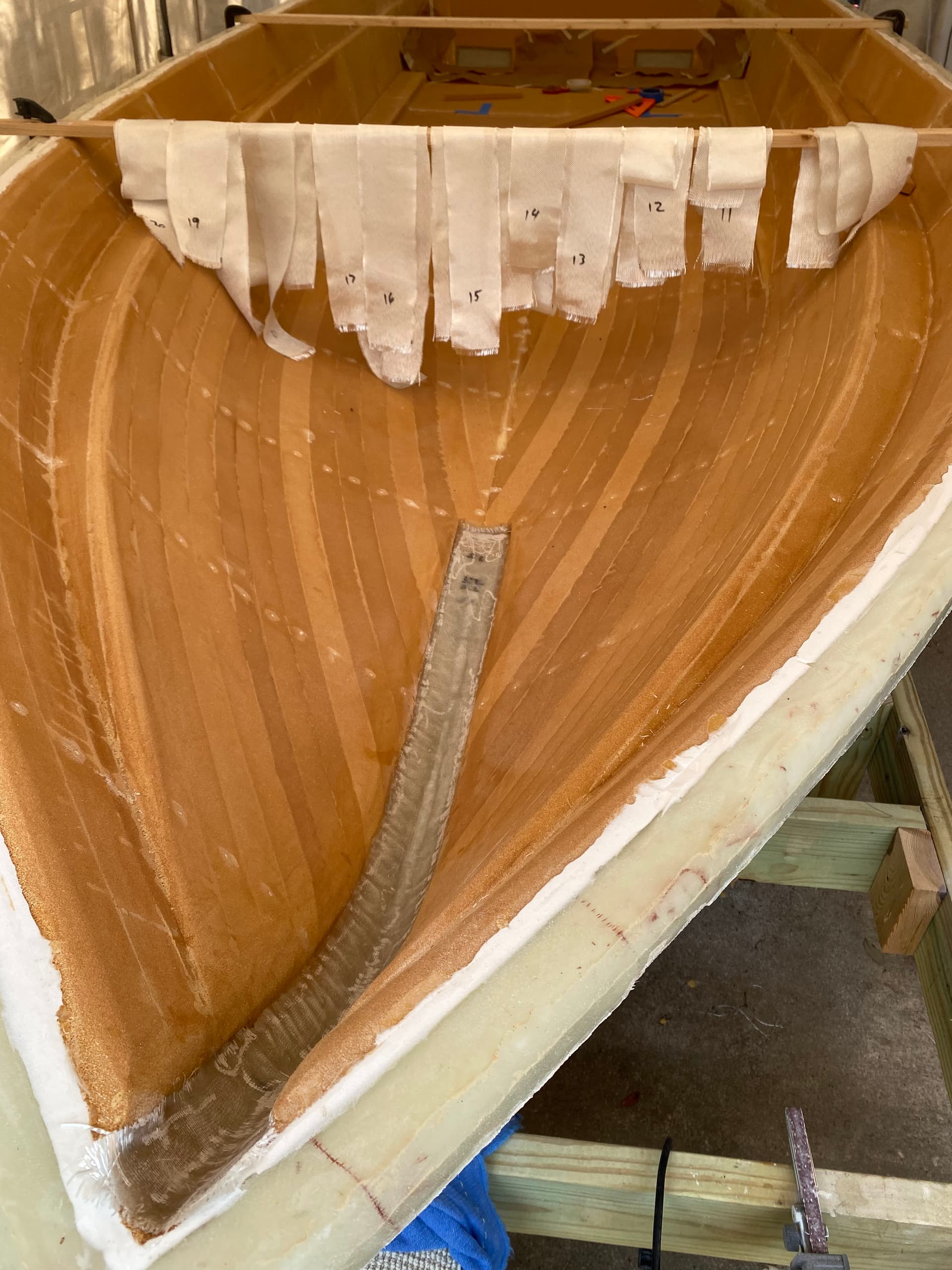 Inside of hull glassed and second core glassed in at the transom. Hull is light and feels very solid at this point.