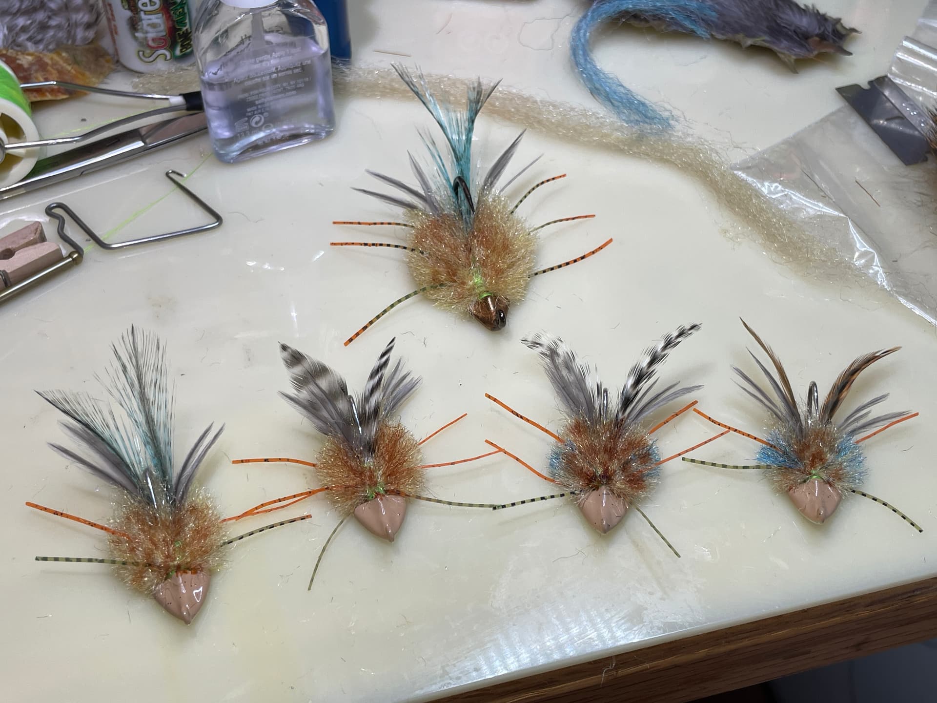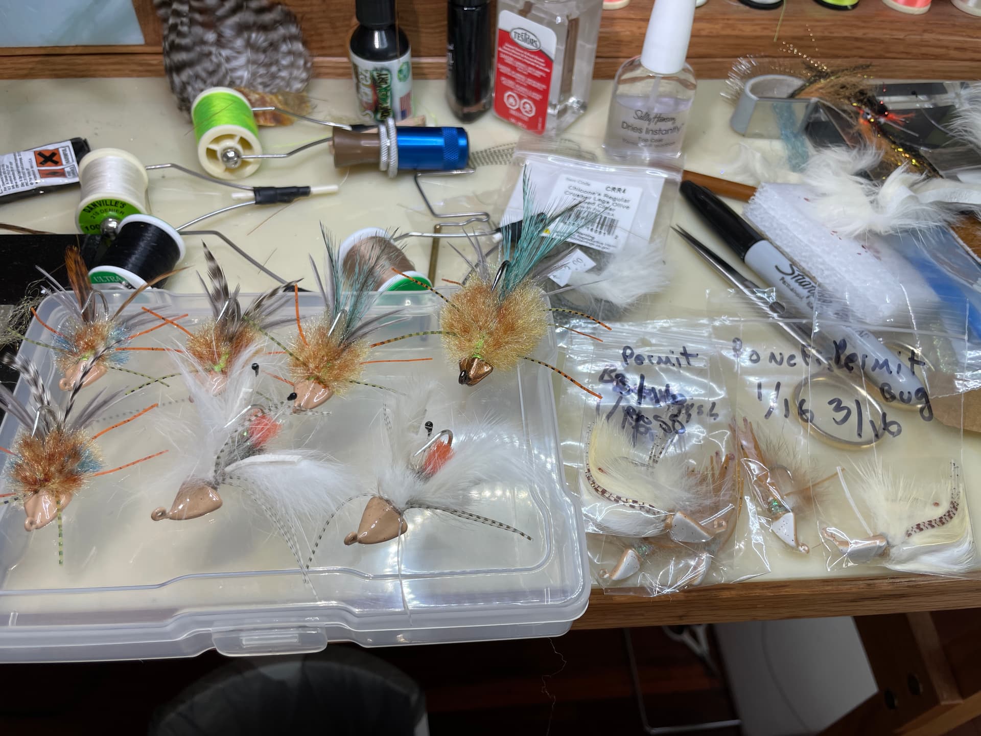 Finished tying all the 1/16 1/8 3/16 crab and shrimp jigs, wifey should be armed and dangerous on those flats next week!
