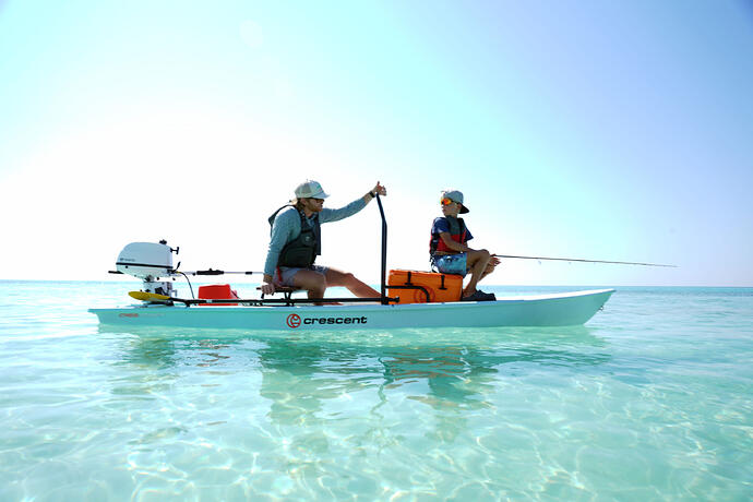 That skiff looks awesome, the Torqeedo electric motor pairs up icily with the kayak version.