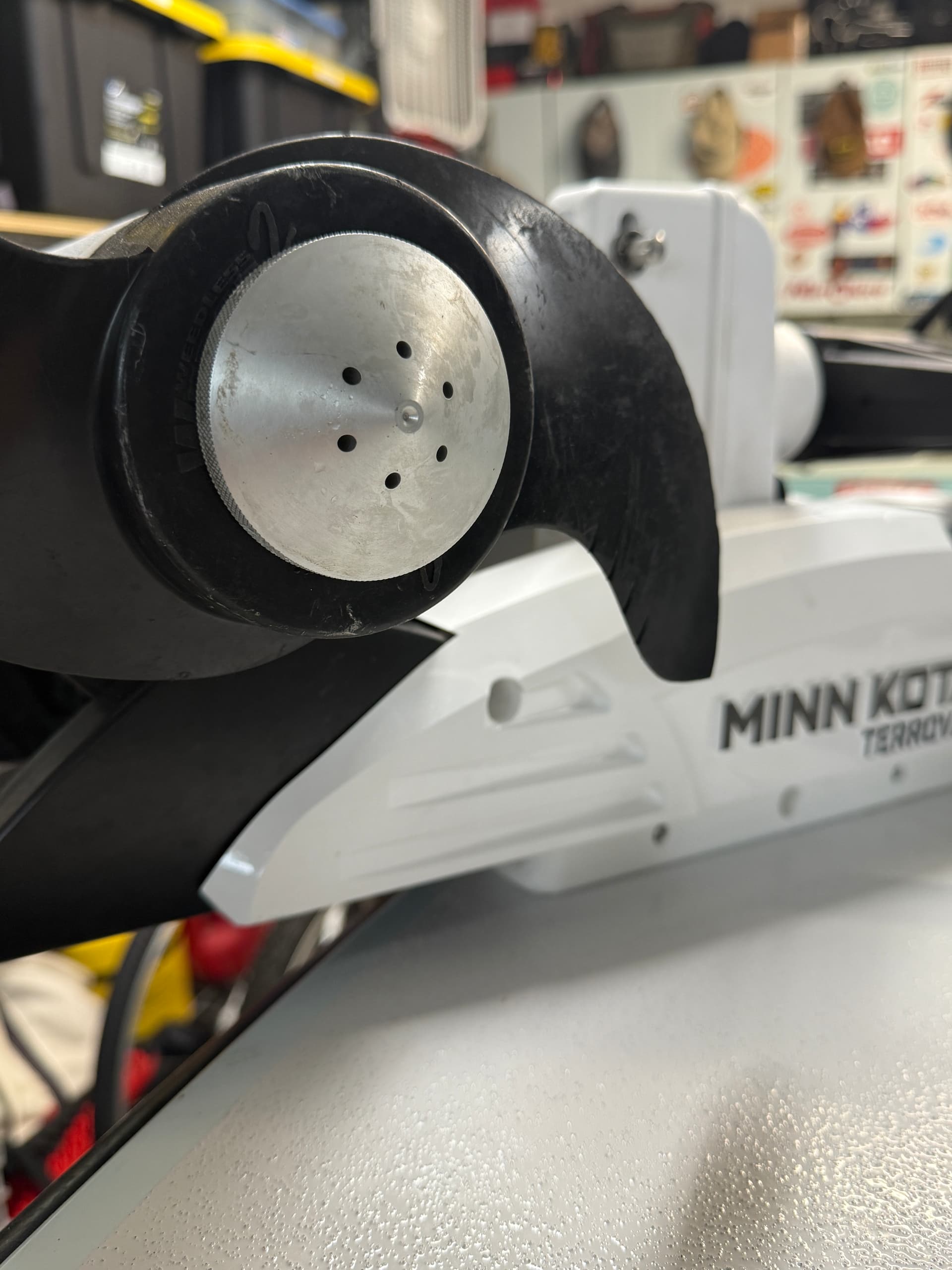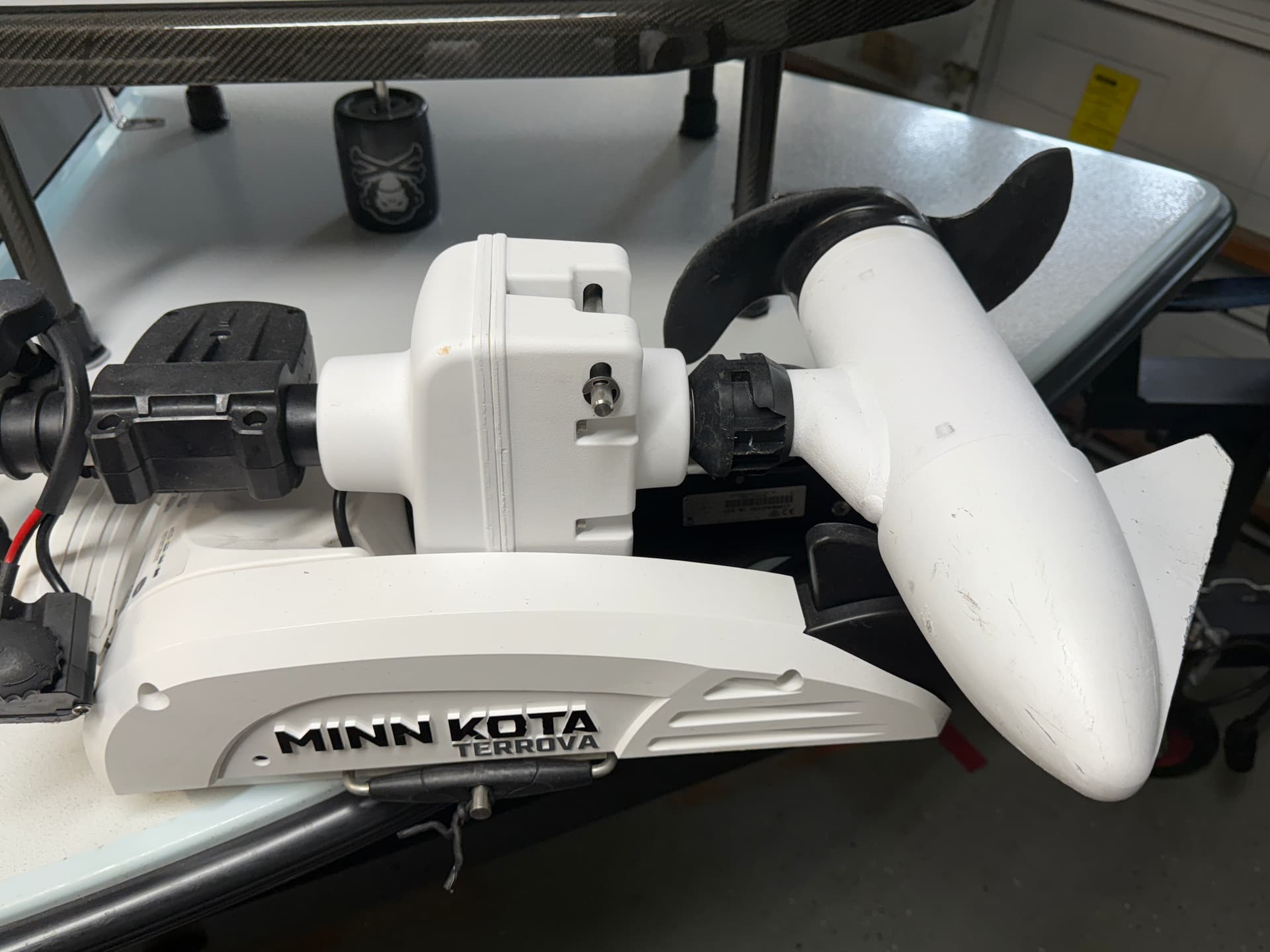 Minn Kota Riptide Terrova Saltwater Trolling Motor for sale. Electric steer, bow mount trolling motor with iPilot GPS. 12V 55 lbs thrust, 54" shaft. Purchased April 5, 2021 ($1658 new). Includes iPilot remote ($189.99 new), T-H Marine G-Force TM Prop Nut (high billet aluminum, reduces vibration and noise; $27.99 new); Battery Tender Plug ($63.99 new). New steering assembly, battery meter, and control board installed by Inshore Marine July 24, 2025. Will have the female end of the Battery Tender plug and the quick release puck available once my new TM is installed.
