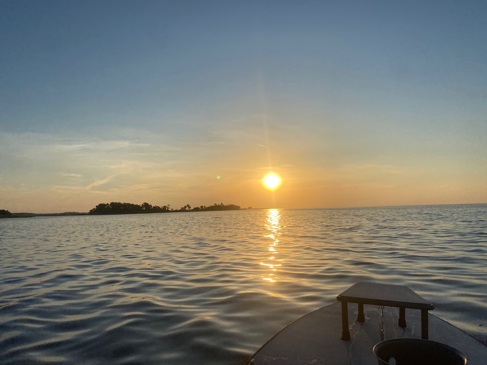 I don’t generally put reds on the reel, but this guy was headed south in a hurry and found the reel in short order. He continues to burn through the drag which was pretty loose, so I snug up on it a bit and that lil $hit does a 180 and heads back towards me. I’m able to take up the slack and keep some pressure on em, as he runs for the grass. Once he got in there, he just stayed put. I finally got myself off the polling platform and to the bow, and into the boat he came.
