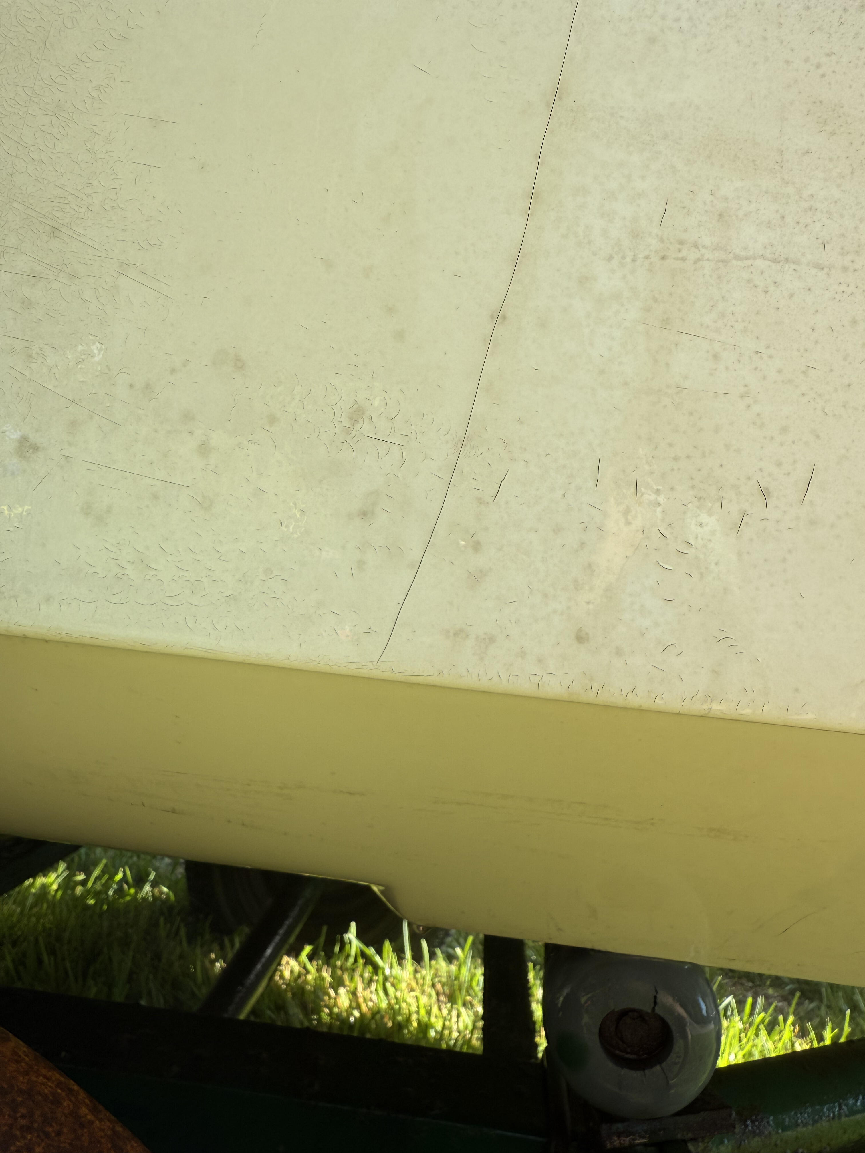 One visible crack on side of hull, but is doesn’t go past the chine, so I think it is just cosmetic.