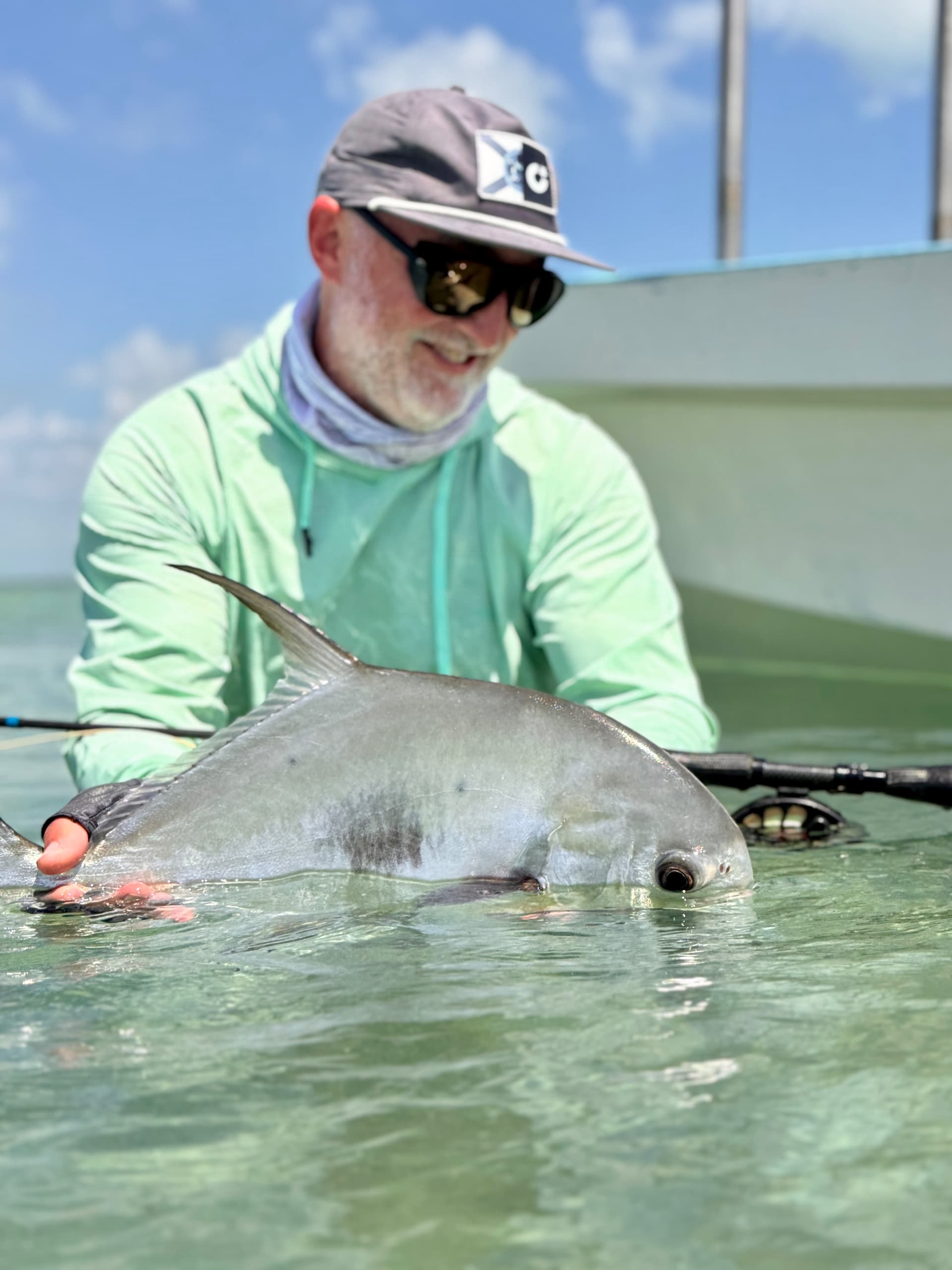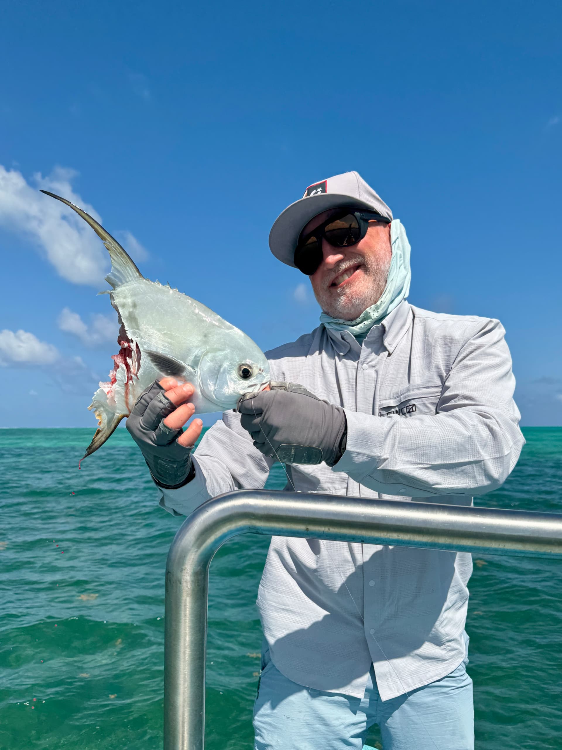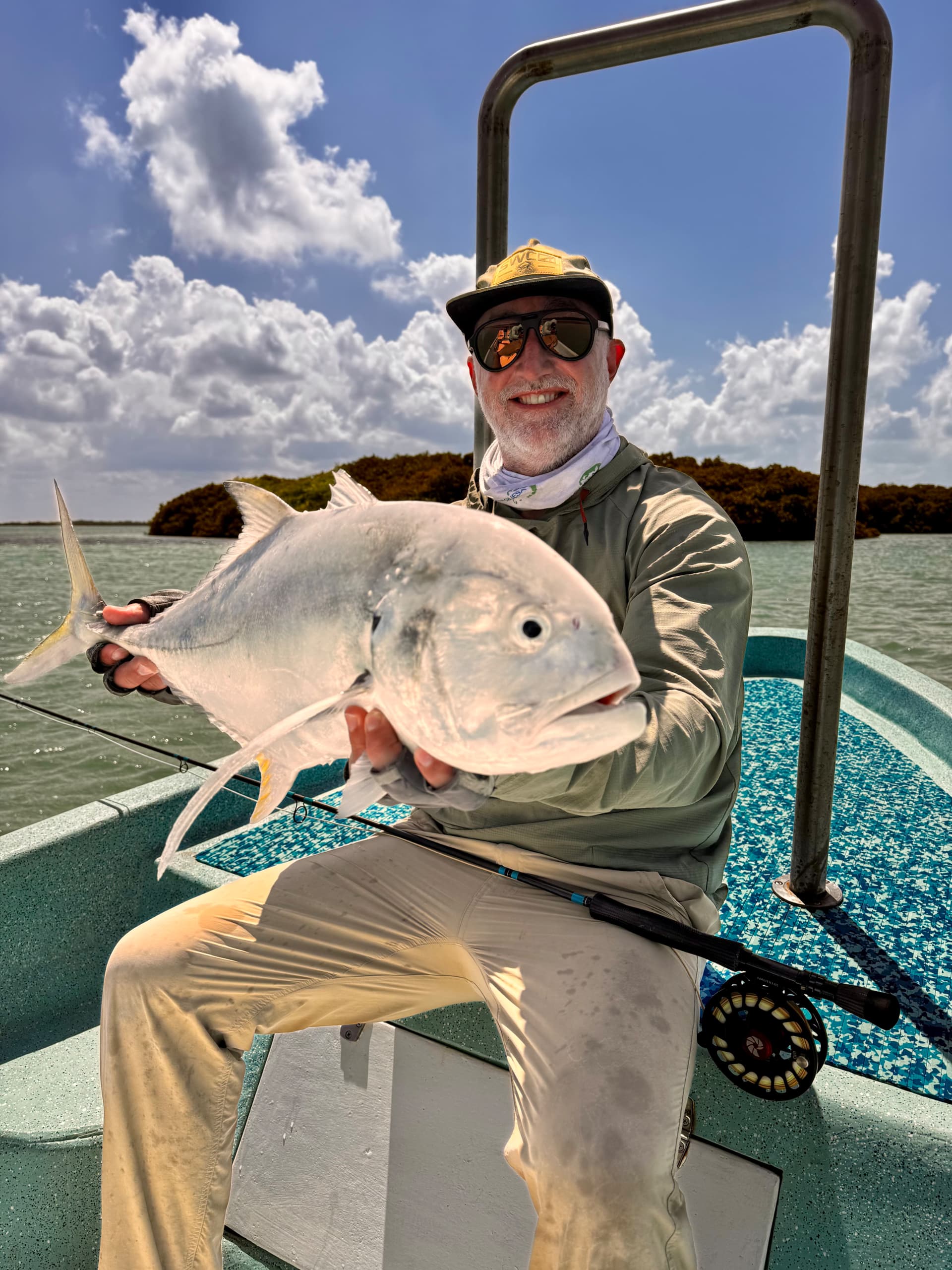 Our group of 6 each caught at least one permit. Most of us got several. The largest in our group was about 25#. I ended up with three, and one break off. I Super Slammed on the trip and had the opportunity to share the skiff with Brian Jill, who also got a permit.