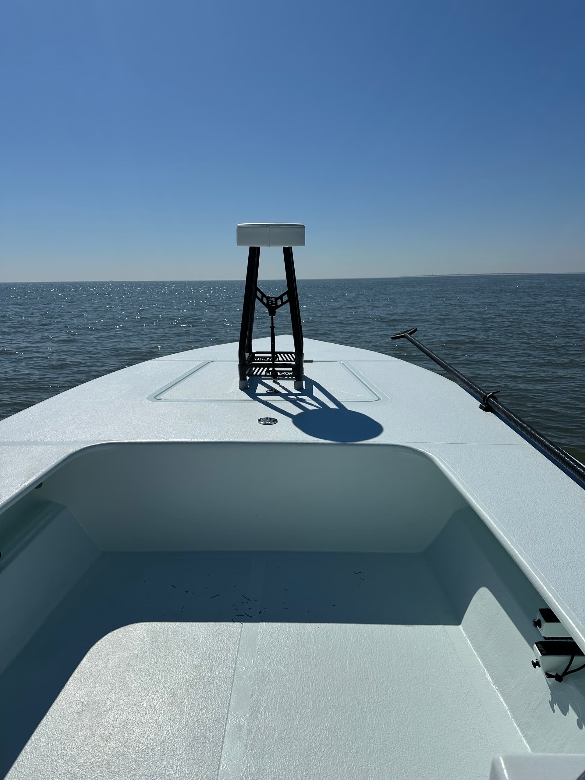 I found a killer deal on a black tip emperor stool from tailwater outfitters during their Black Friday sale. I went with the Kennedy tiedowns, low profile mount, and purchased my turnbuckle from vMarine. I think the turnbuckle alone was $60 but it’s extremely beefy and really keeps the emperor stool secured in place. I wanted family and friends to be able to sit or lean into it without any concern or worry of failure. I’ve seen some of these stools in the past on other people’s boats and they use these little dainty Turnbuckles commonly seen on casting platforms, and it just didn’t sit right in my mind. As well to further reinforce the stool I used a piece of starboard on the underside of the forward hatch lid, so I could really tighten the stool down without worrying of ever crushing any core materials. It’s solid as a rock and I have 100% confidence in this stool. The only thing I might change in the future would be removing the existing hinges to replace them with the most beefy ones available. Between the gas struts and emperor stool they are under a lot of pressure, but as of now are holding up just fine without issue.