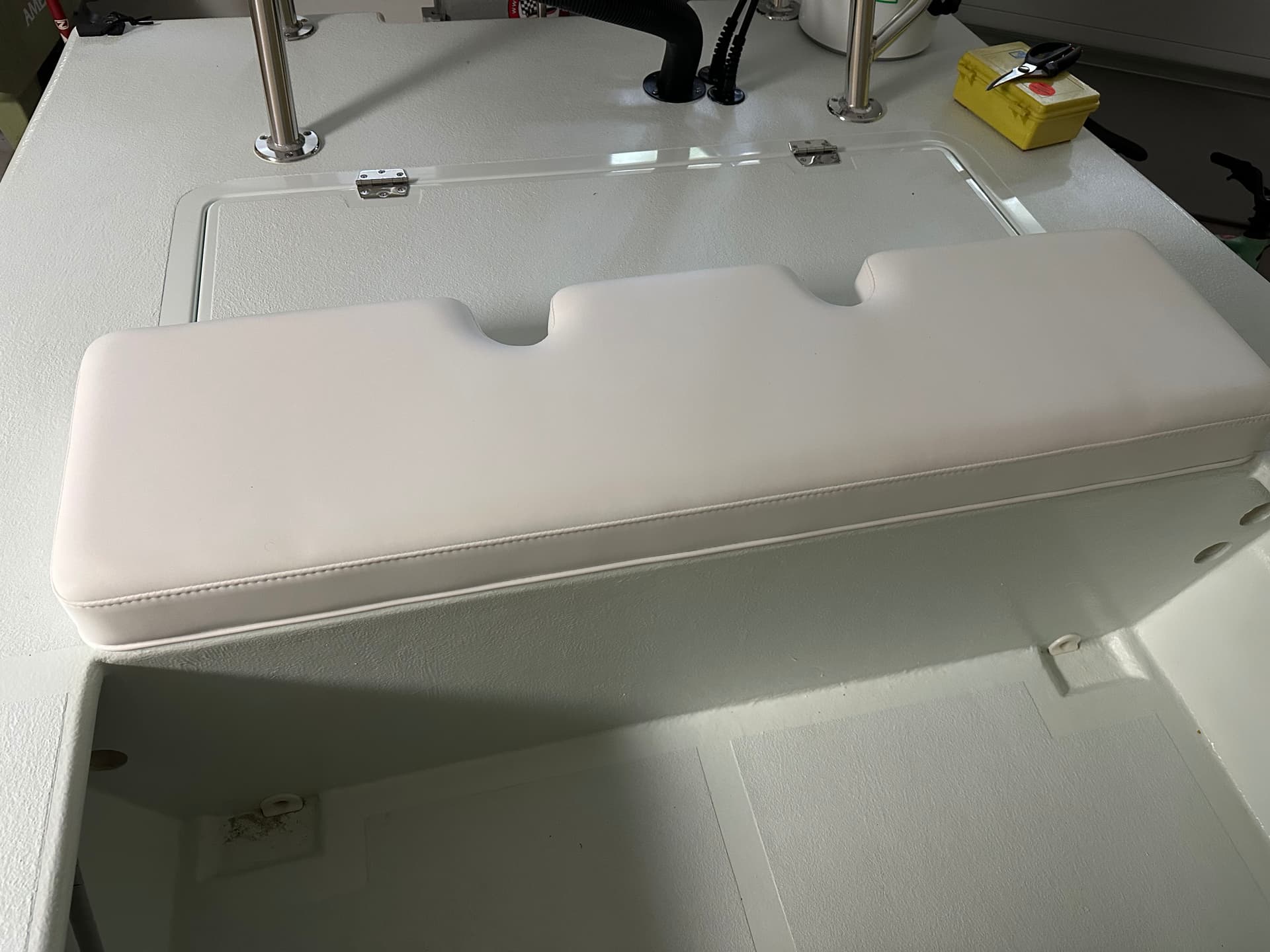 Cass at new Moon upholstery made me a really nice double thick cushion for the aft deck. He was a really nice guy to talk with, the process was easy, and most importantly the product turned out spectacular. He does great work and uses top of the line materials. There’s a reason you see new moon upholstery on high end skiffs. I chose all white with the “smooth” finish.