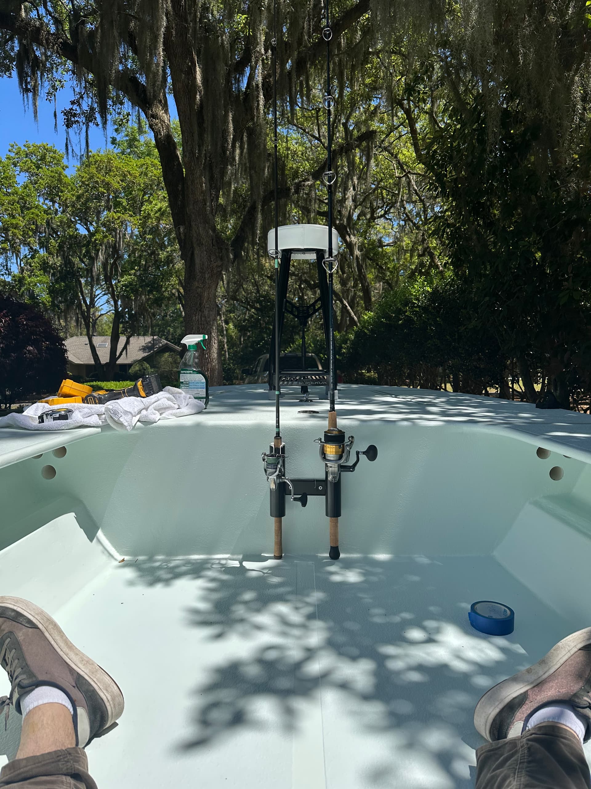 Just wanted to provide a much needed update to my south dade islandia. Louis and Ralph finished my skiff in October 2024. It has been stated before on that other site, but South Dade skiffs went above and beyond, and built me a custom skiff to my exact wishes. From a beefier laminate schedule, extended cockpit dimensions, and a custom one off side console Louis was all ears. In theory, I wanted this skiff to have a roomy interior and to be an all-around versatile tank of a boat. My last few skiffs were true technical polling skiffs, and I felt the need for more cockpit space, free board, storage and a little more dead rise. Due to my strict HOA,I am limited to garage storage only, and one skiff is all the wife will let me stuff in there. In terms of fishing, I had this boat built with the hopes of being able to fish inshore creeks, the beach and nearshore wrecks. My previous boats were not up to the task, considering the giant tides and snotty conditions one can face in the low country. Aside from fishing I also like to camp via skiff, and needed room to store tons of gear. Needless to say, the Islandia non-liner hatches are gigantic and can store just about anything one would desire. so far the layout of this boat has proven extremely versatile, and gives the opportunity to do a bunch of stuff from one single boat. For instance, on days when I take the family out, I can load the boat with beanbag chairs, coolers and water toys all while not feeling cramped.