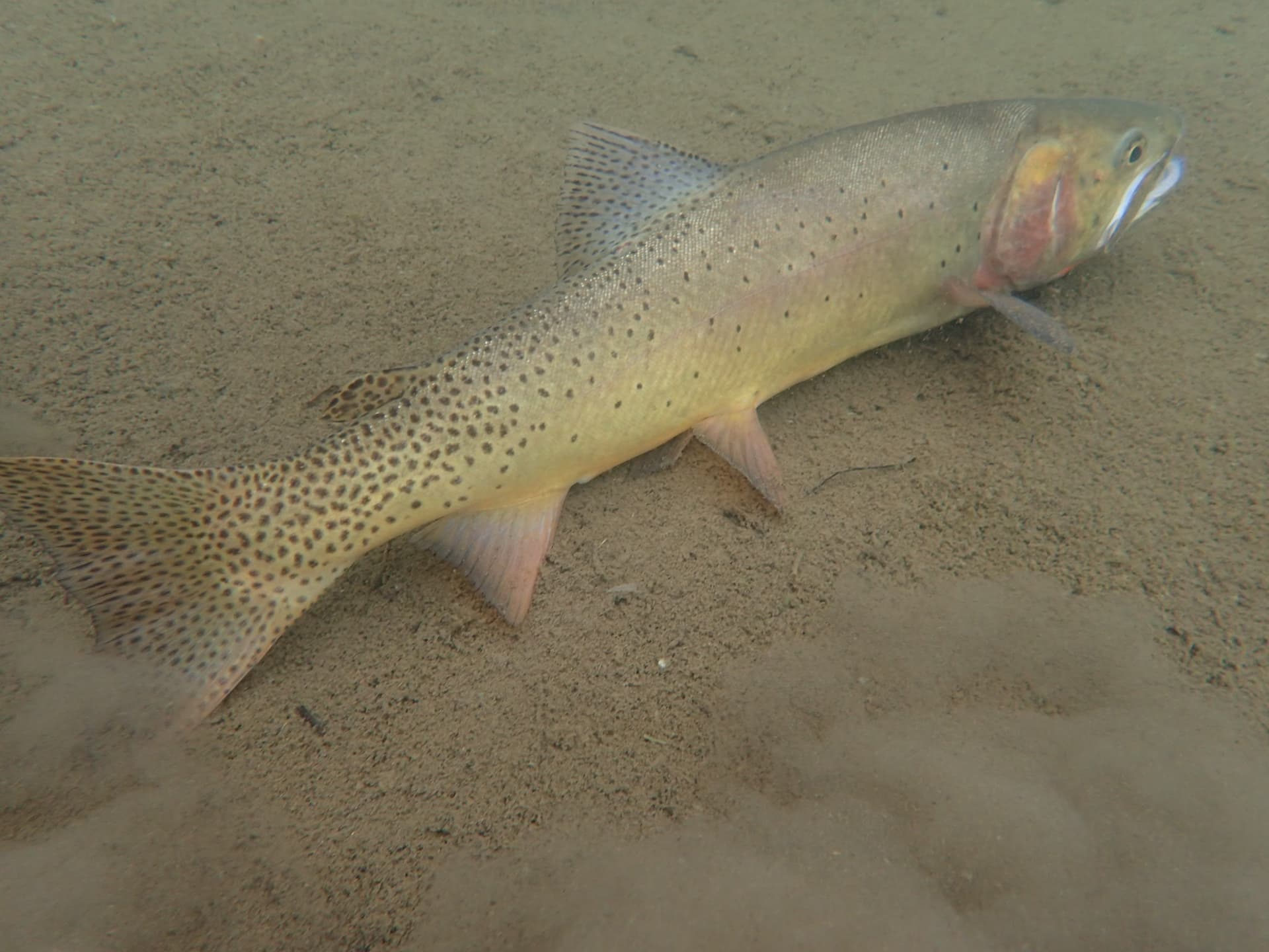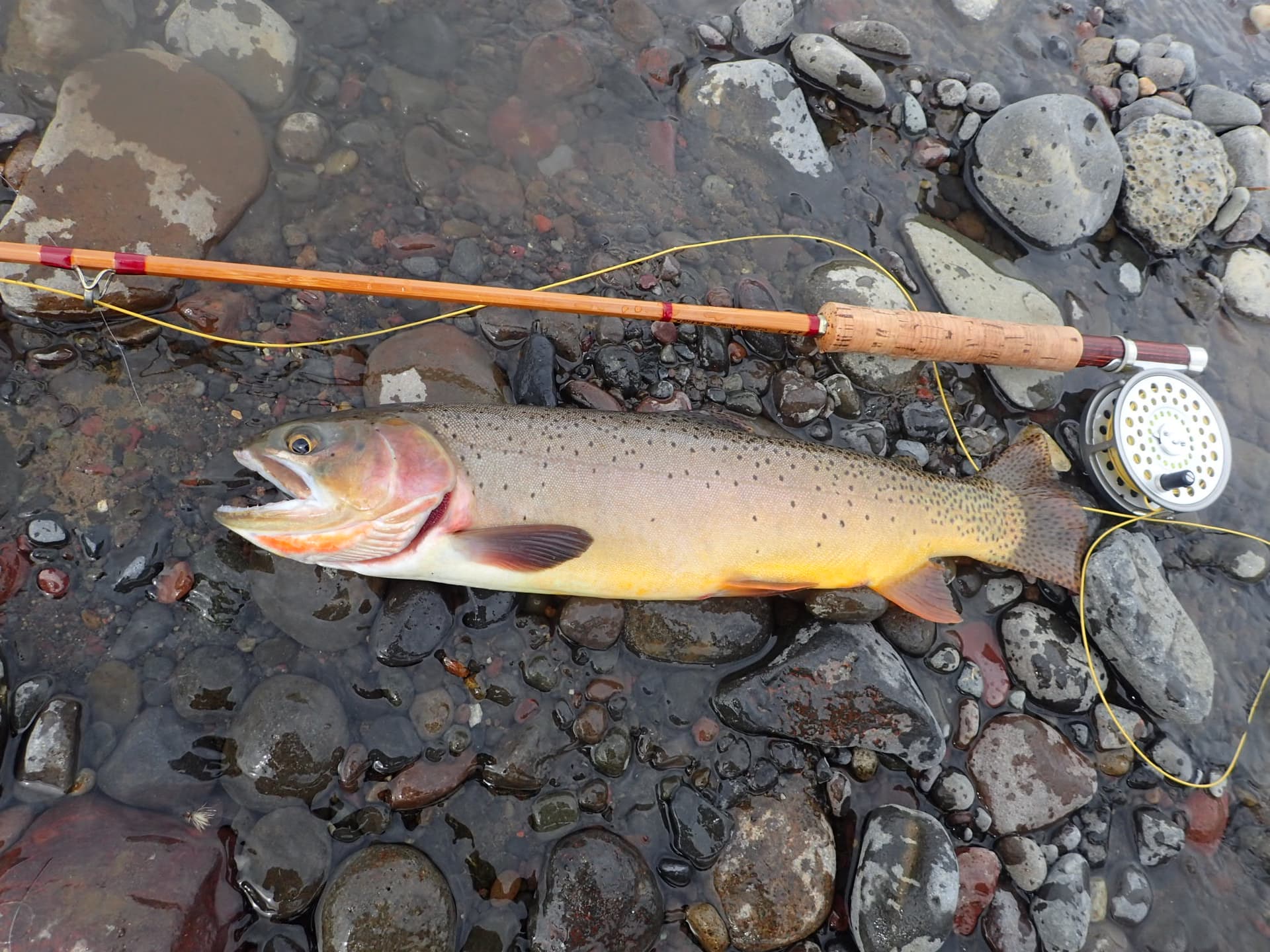 Jared, 22”, she ate at a #18 sulphur 7x tippet, on the Lamar, on a cutback flat area, there were two or three sipping. That’s a 5wt bamboo w a Hardy reel and a 444 classic line.