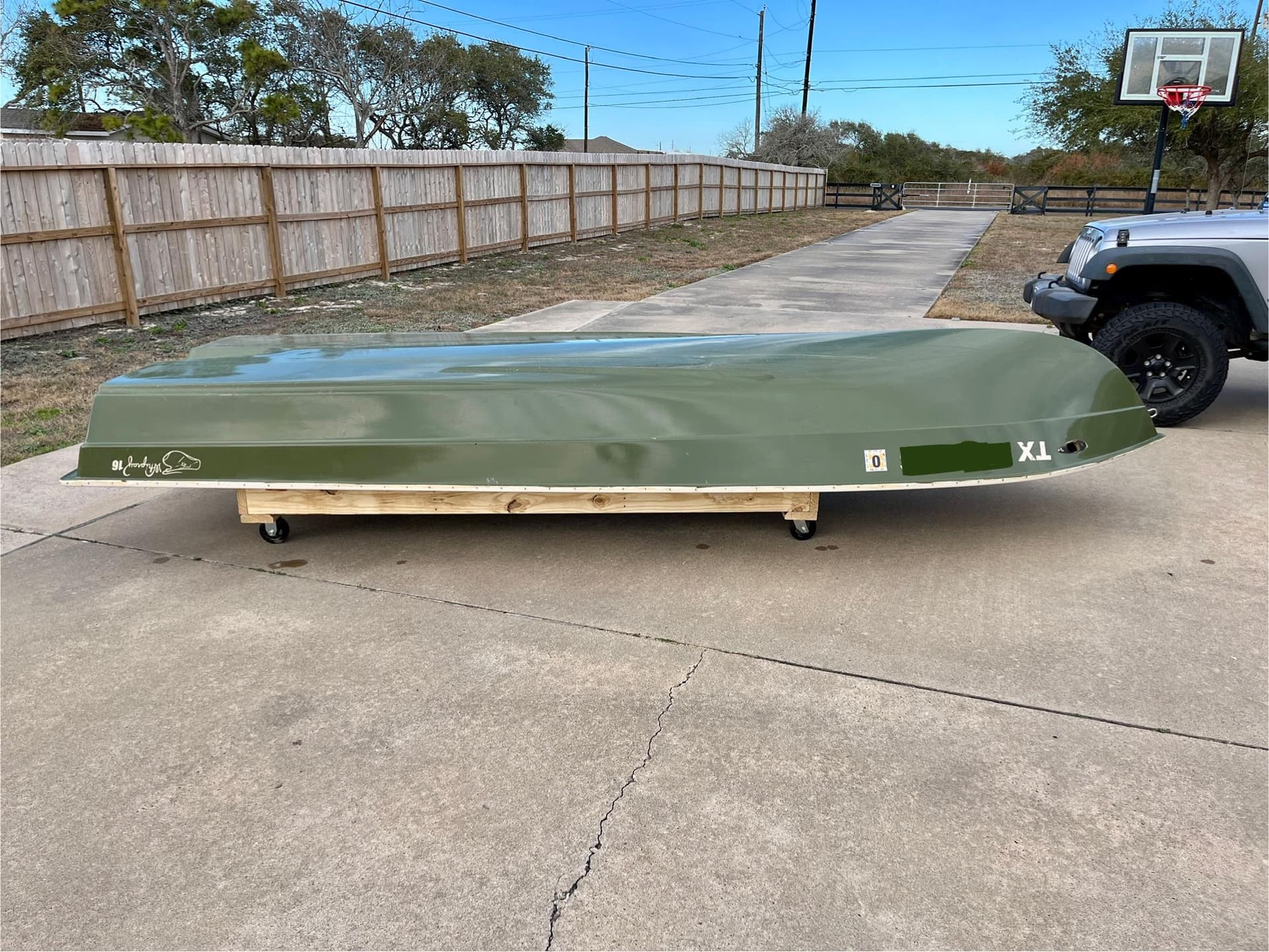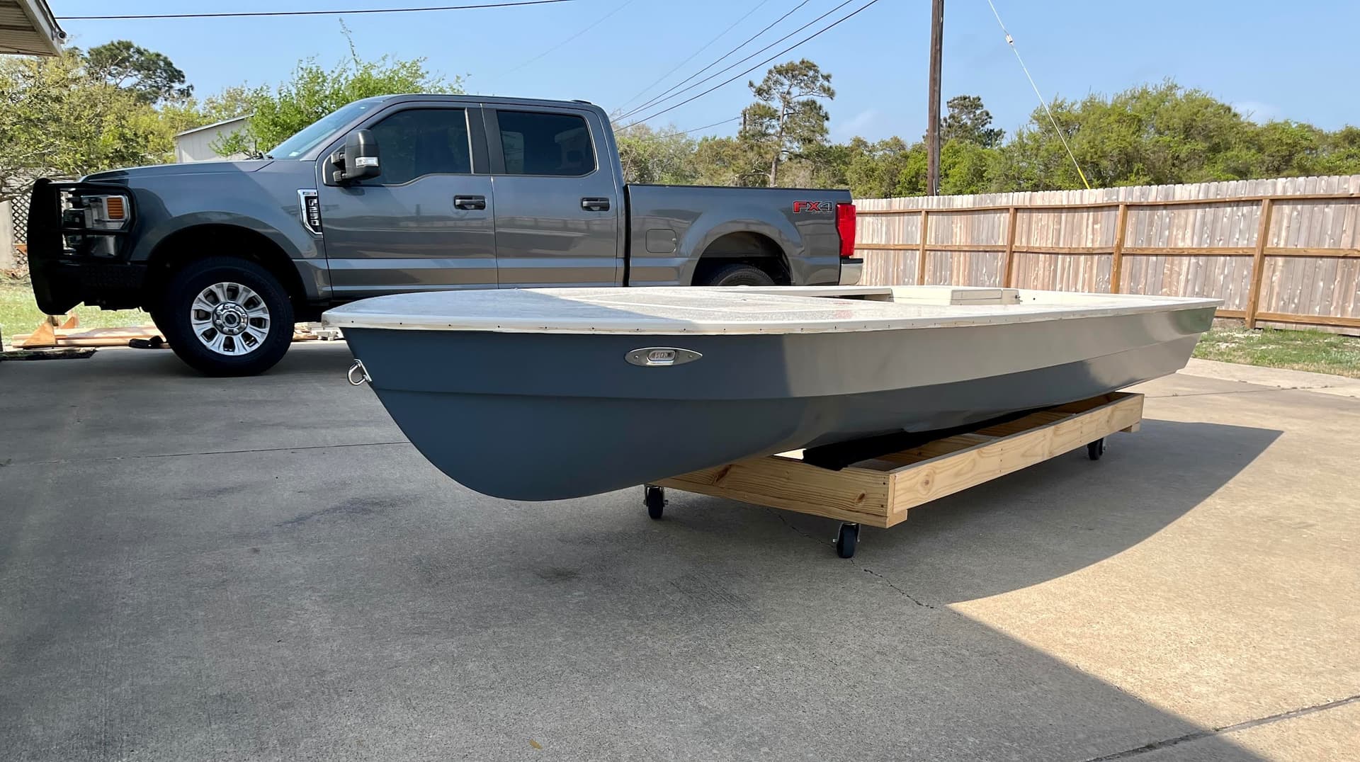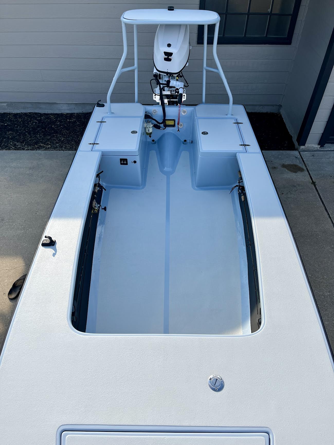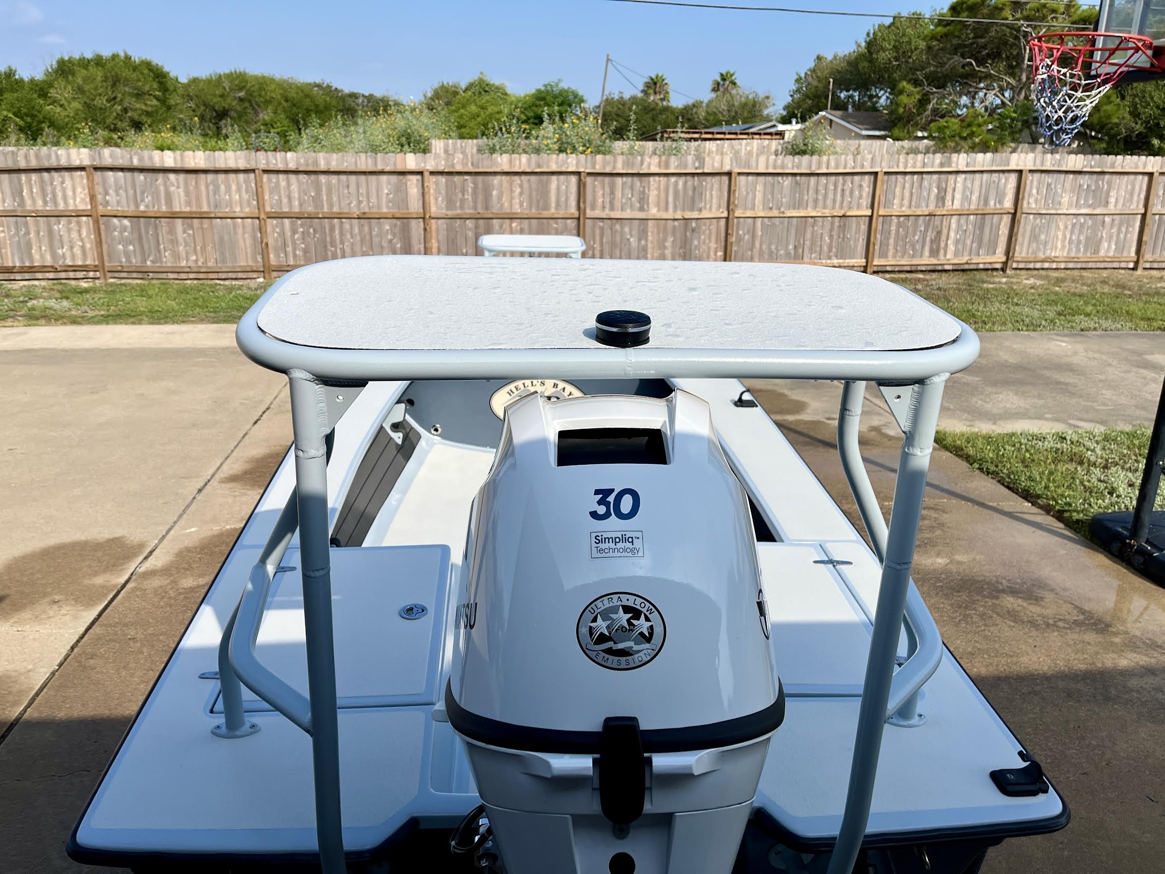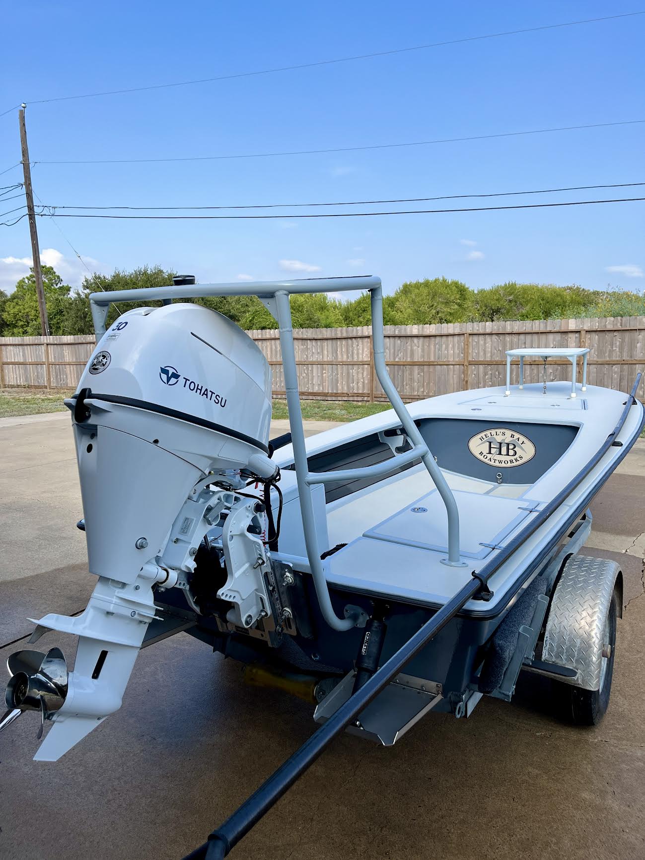 I’m posting this to chronicle my experience buying and refitting a vintage Hell’s Bay skiff. To start I’ll say I’m not a professional and way more of a learn as you go type of guy. Yes I make tons of mistakes and I learn from them and that’s the important part. I’ve wanted a Hell’s Bay skiff since the first one hit the market. This is my first Hell’s Bay but not my first boat or skiff. I found her right here in Corpus Christi, she had been sitting in a back yard for 14 plus years. The previous owner had taken a vintage tiller steer skiff and added a small false floor and center console. We settled on a deal and I drug her out of the weeds and brought her home.
